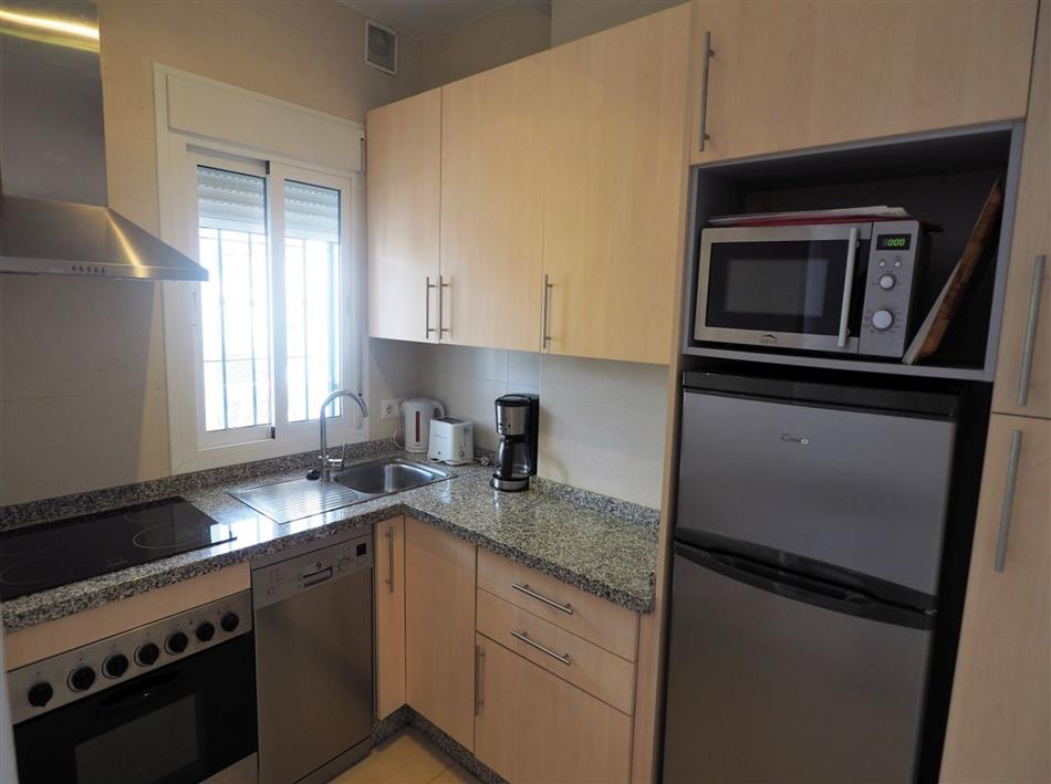Facilities include a lift, fully fitted kitchen with oven/hob, microwave, dishwasher, and fridge freezer, washing machine, safe, free Wi-Fi, TV with international channels, air-conditioning in the living room and master bedroom. The apartment also has a garage in the secured, underground car park. The communal pool is 10m x 4m with depths 0.9m to 1.4m, is surrounded by large terraces and is open year-round.