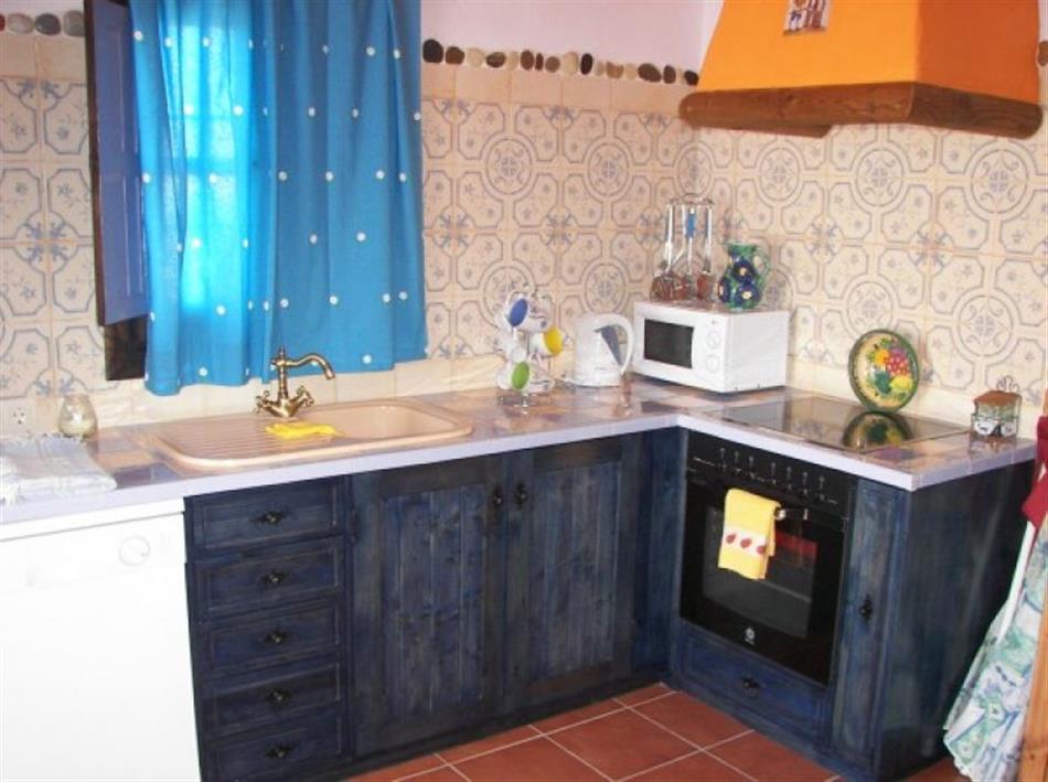 The ideal situation for a getaway holiday, this unusual cortijo offers comfort and still enjoying the traditional rustic feel. Set on 3 floors, the entrance level leads to the living area, dining and open plan fully equipped kitchen, a small w.c. The lower level has a twin room with a shower room to the side. The upper level has 2 double bedrooms and a shower room, a balcony from one of the bedroom overlooks the country side.