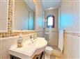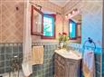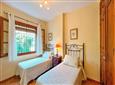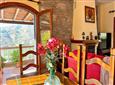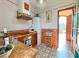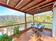 The first floor boasts a thoughtfully designed layout, featuring a charming hall, a separate kitchen with its own terrace, a living room with a cozy fireplace, access to a spacious terrace equipped with a large dining table and chairs, a generously sized bedroom, and a well-appointed bathroom.