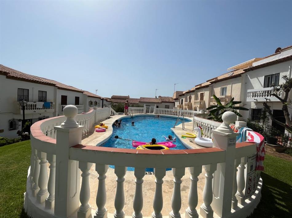 Newly refurbished town house style villa offering spectacular views in the lovely La Hacienda community, great for families with children. Villa Encanto is accessed via the secured, communal courtyard gardens where there is a large communal pool. The villa has three bedrooms, two bathrooms and a further WC.
